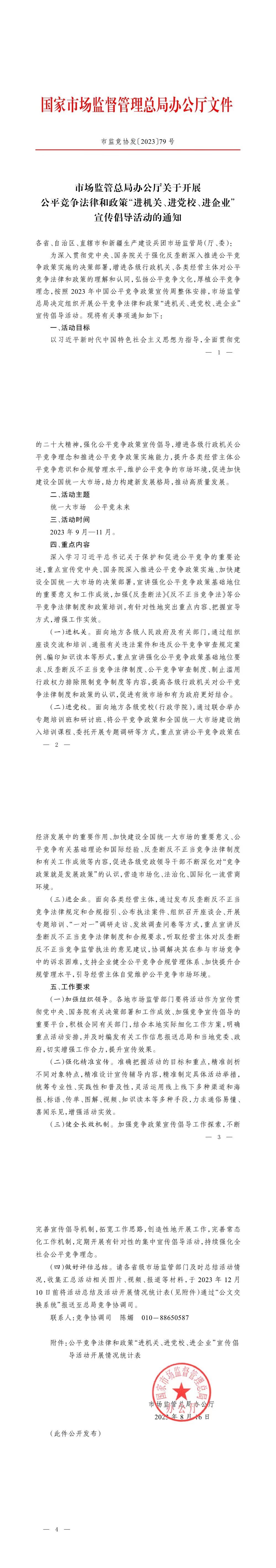 市場監(jiān)管總局辦公廳關(guān)于開展公平競爭法律和政策"進(jìn)機(jī)關(guān)、進(jìn)黨校、進(jìn)企業(yè)"宣傳倡導(dǎo)活動的通知